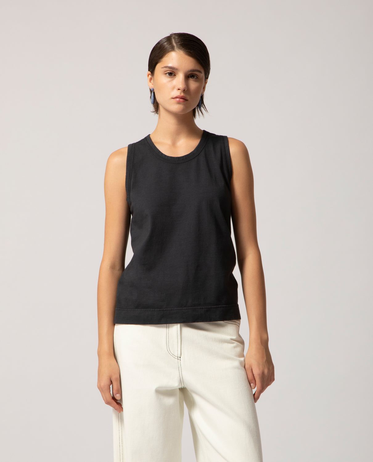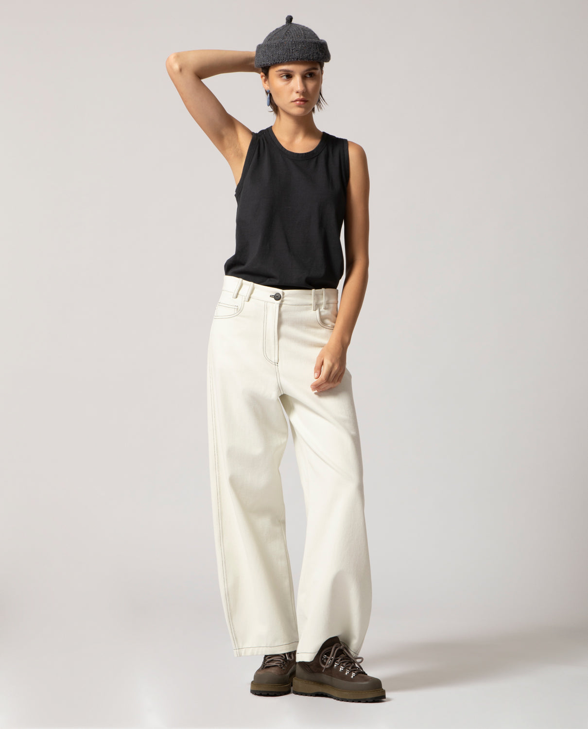 Defined by turned and topstitched edges, this piece is designed to be styled with garments in the same tone, creating an essential, layered look.
